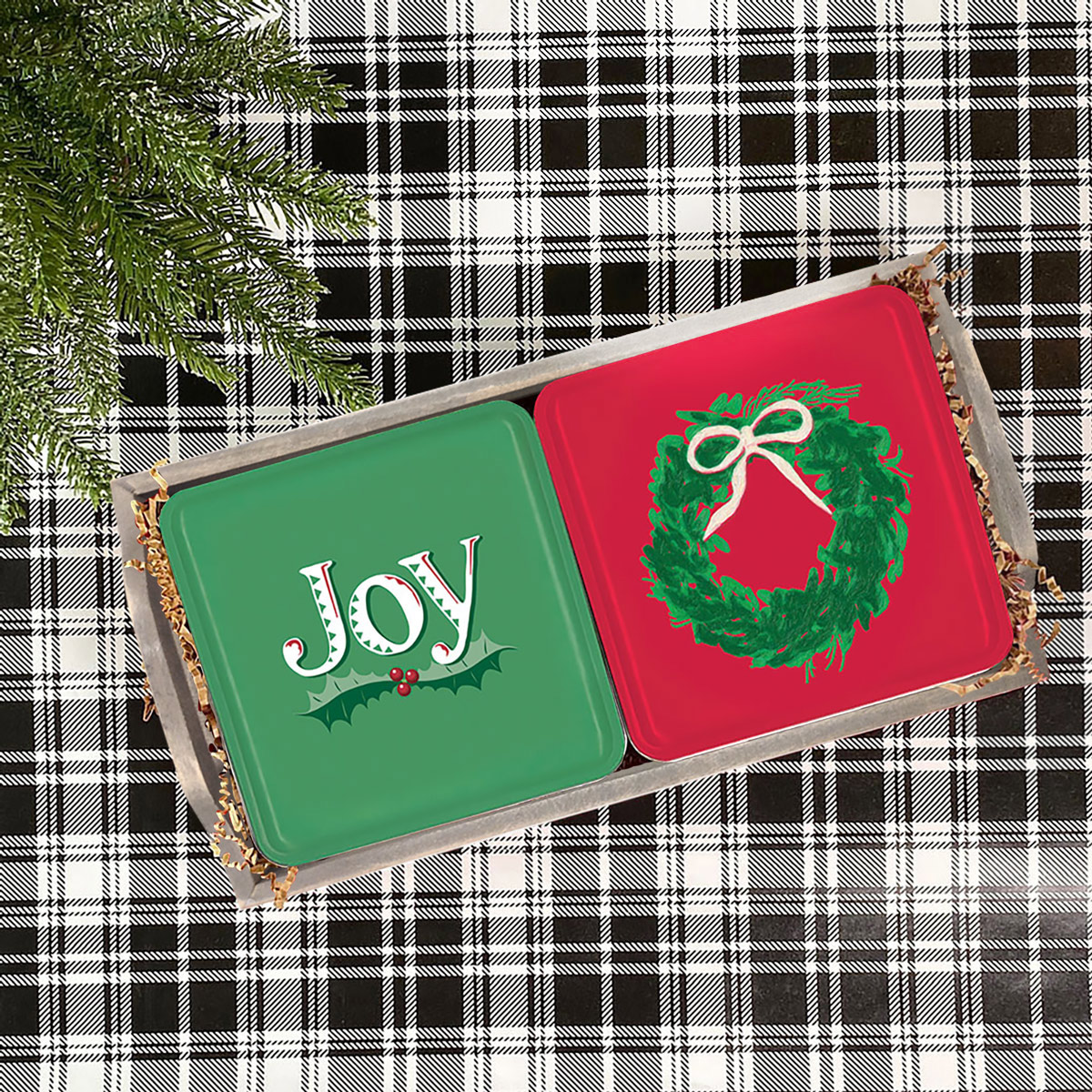 This festive tray is packed with joy, featuring tangy Key Lime Coolers and salty Pecan Cheddar Biscuits. A merry little gift that’s big on flavor!